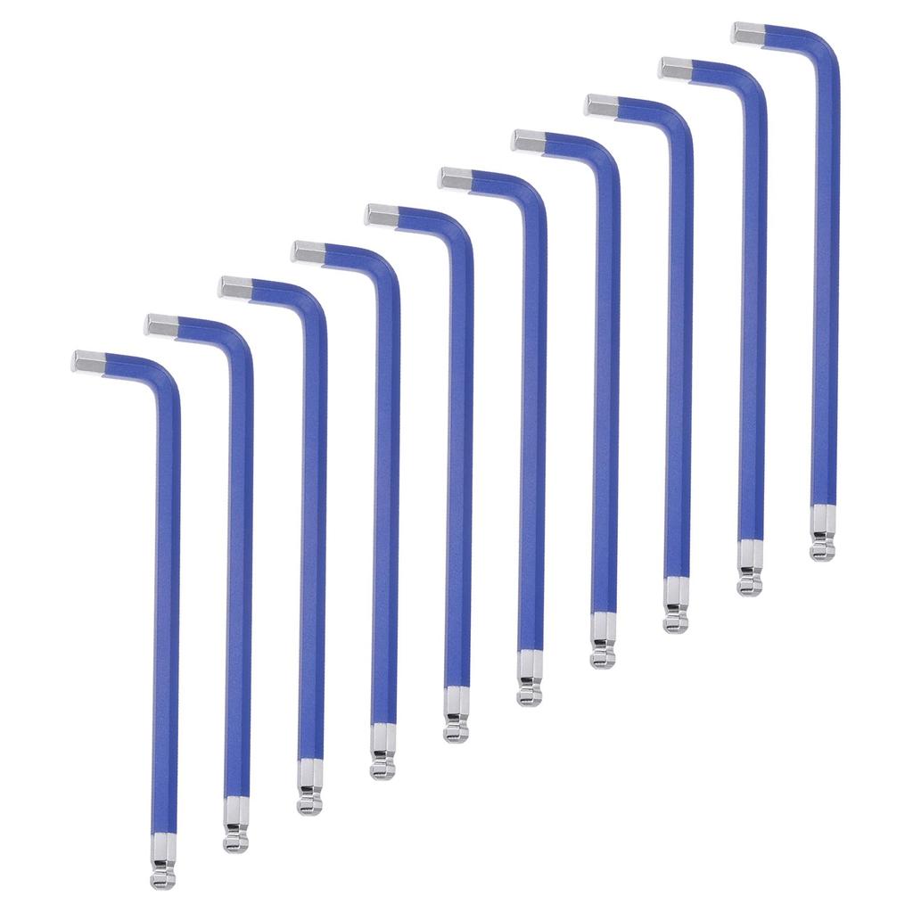 Der L-förmige Schraubenschlüssel ist aus gehärtetem, wärmebehandeltem S2-Stahl gefertigt (56-60 HRC) mit hochglänzendem Chrom und Spritzguss-Kunststoff-Finish, das hohe Festigkeit und Härte, Rostbeständigkeit und Abriebfestigkeit bietet. Die abgeschrägte Sechskantspitze gleitet leicht in Befestigungselemente und reduziert den Verschleiß am Schraubenschlüssel und am Befestigungskopf.. Das Kugelende ist so konzipiert, dass es Innensechskantschrauben bis zu einem Eintrittswinkel von 25 Grad erreicht, was das Justieren in schwierigen Winkeln erleichtert.. Das Lang-/Kurzarmdesign bietet zusätzliche Reichweite mit dem langen Ende für tiefe Arbeitsbereiche und zusätzliche Hebelwirkung mit dem kurzen Ende zum Anziehen von Befestigungselementen.. Der L-förmige Sechskantschlüssel wird häufig zum Entfernen und Installieren von Sechskantschrauben mit Zylinderkopf in Anwendungen wie Handtuchhaltern, Türgriffen, dem Zusammenbau von Möbeln und Geräten verwendet.