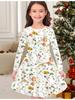 Mädchen Herbst- und Wintermodekleid, 3D-Blumendruck Rundhalsausschnitt Lang Kinder-T-Shirt-Kleid, Lässig Vielseitig, Weihnachtskleidung