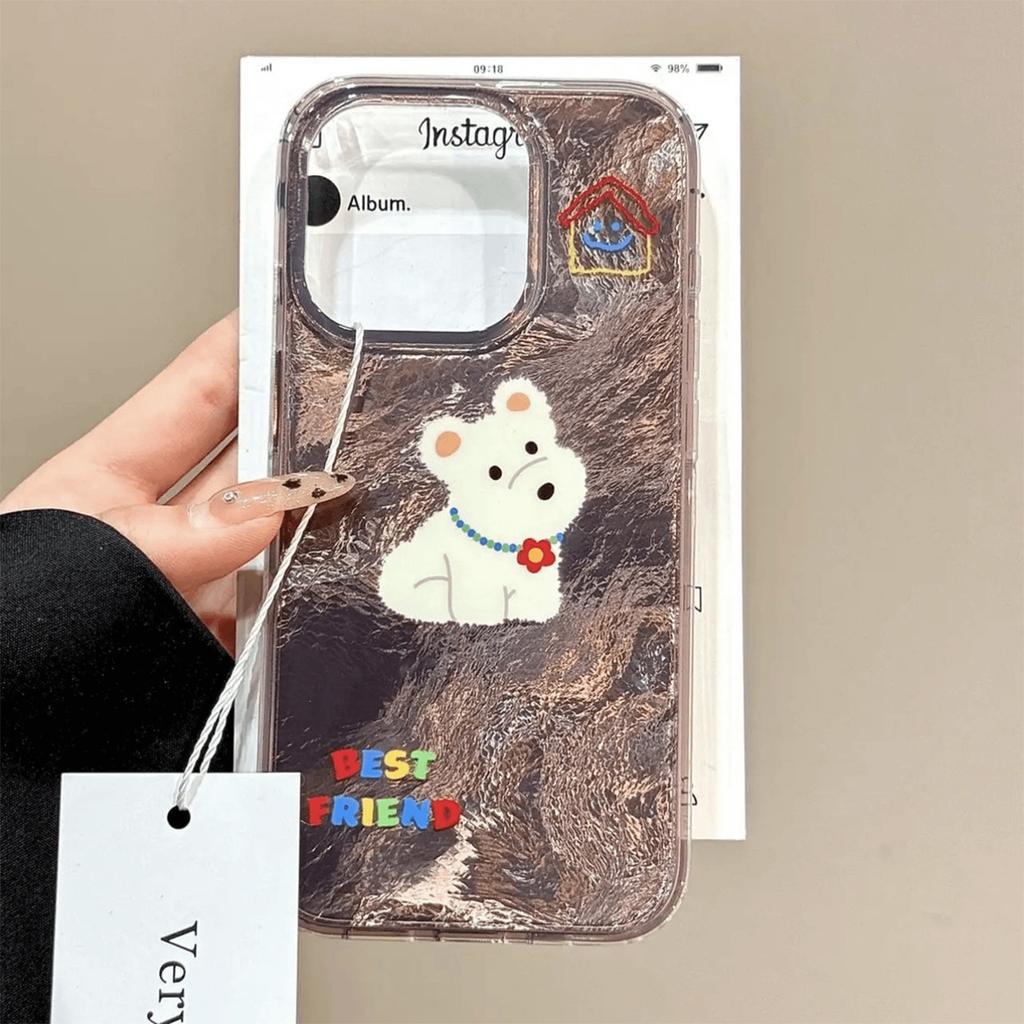 Neue Apple IMD Handyhülle mit niedlichem Cartoon-Hundmuster für Mädchen, High-End-Haptik, Transparente Doppelschicht-IMD-Handyhülle