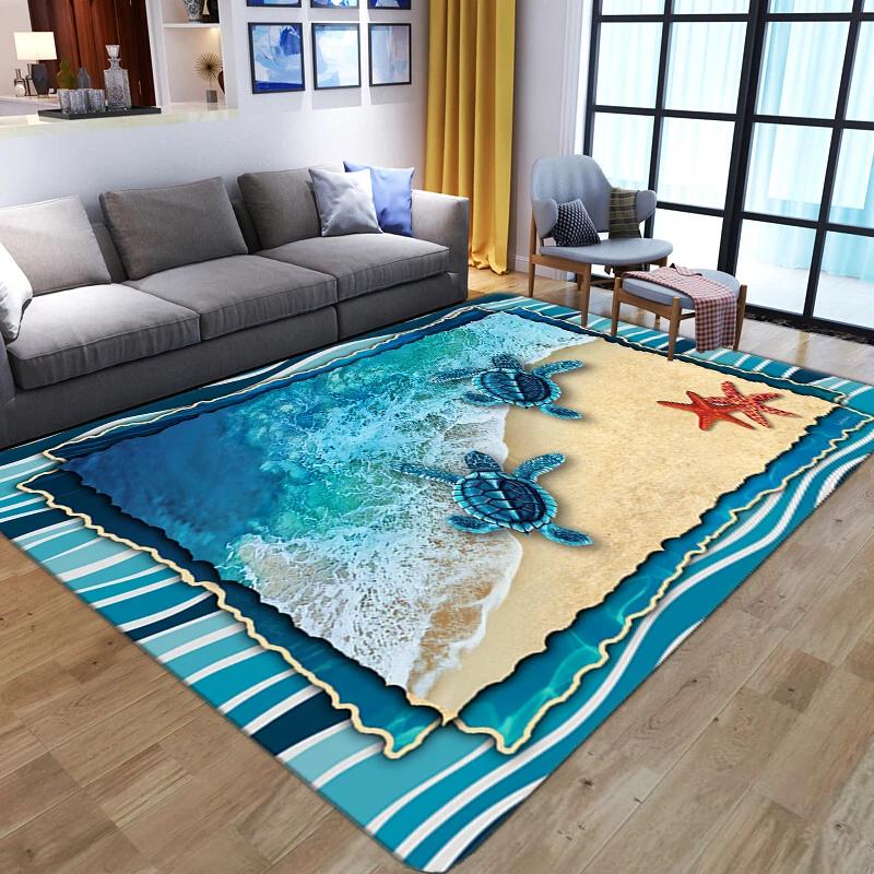 3D-Meeresschildkröten-Teppich für Wohnzimmer, Heimdekoration, Sofa, Tisch, große Teppiche, Schlafzimmer, rutschfeste Bodenmatte, Bad, Eingang, Fußmatte