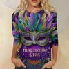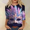Damenmode Lässig Rundhals Dreiviertelarm Karnevals-Print T-Shirt Top