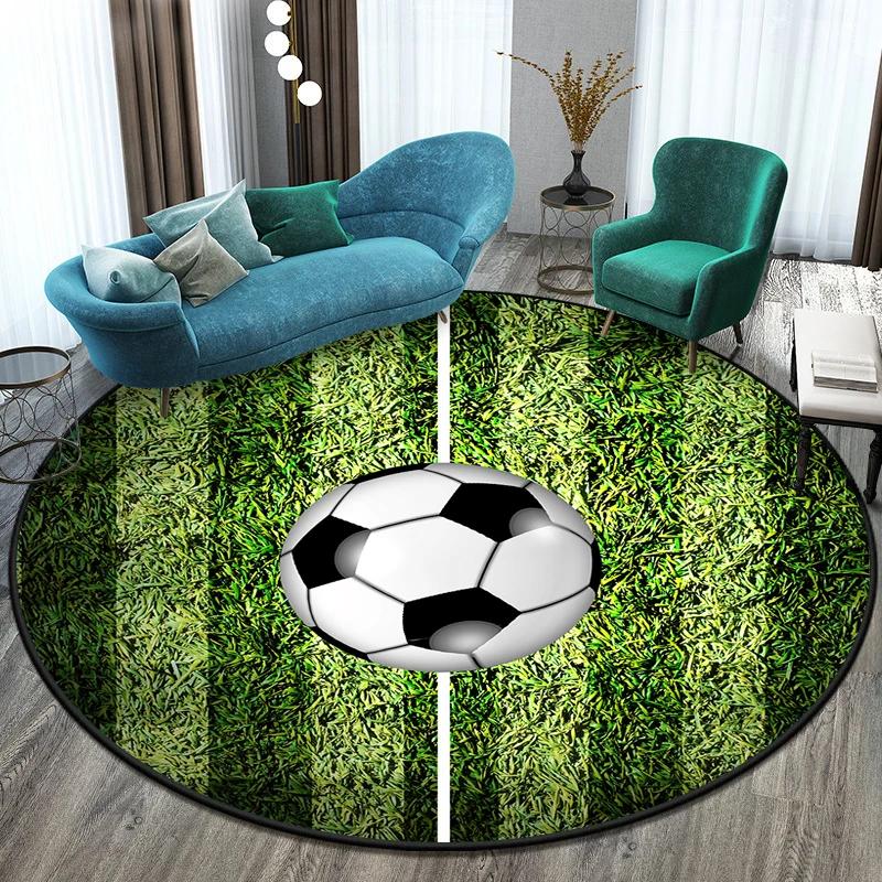 Fußball Fußballfeld Bedruckter Runder Teppich für Wohnzimmer Matte für Kinder Bodenteppich Yogamatte Schlafzimmer E-Sport Stuhl Rutschfeste Matten