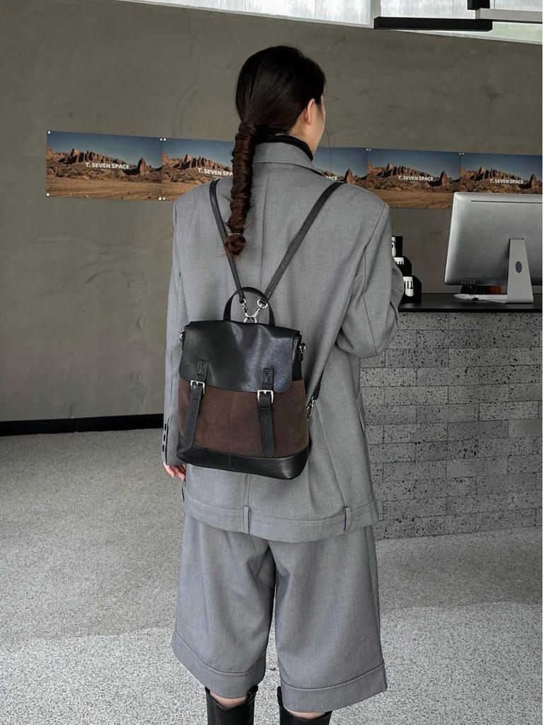 2025 Damen Wildleder Colorblock Großes Fassungsvermögen Retro Rucksack
