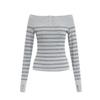 Retro Gestreifte Nähte Einseitig Schulterfrei Slim Langärmeliges Oberteil für Damen Herbst Design Unterzieh-T-Shirt