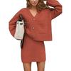 Women's solid color woolen button cardigan dress two-piece set
