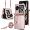 Luxus Crossbody Kartensteckplatz Geldbörse Lederhülle Für OPPO Find N3 Flip N2 Flip Langes Lanyard Riemen Hülle Coque
