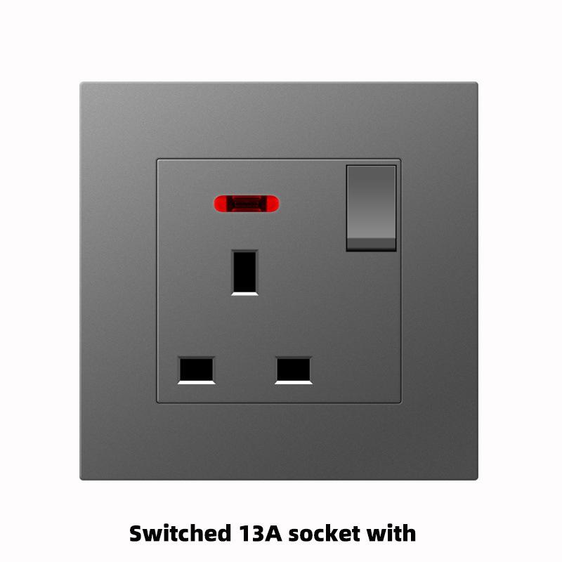 UK Grey 86 Panel 13A Household Wall Power Switch Socket, with USB, 220V Universal Socket, 18W Type-C Fast Charging Socket,