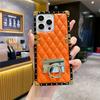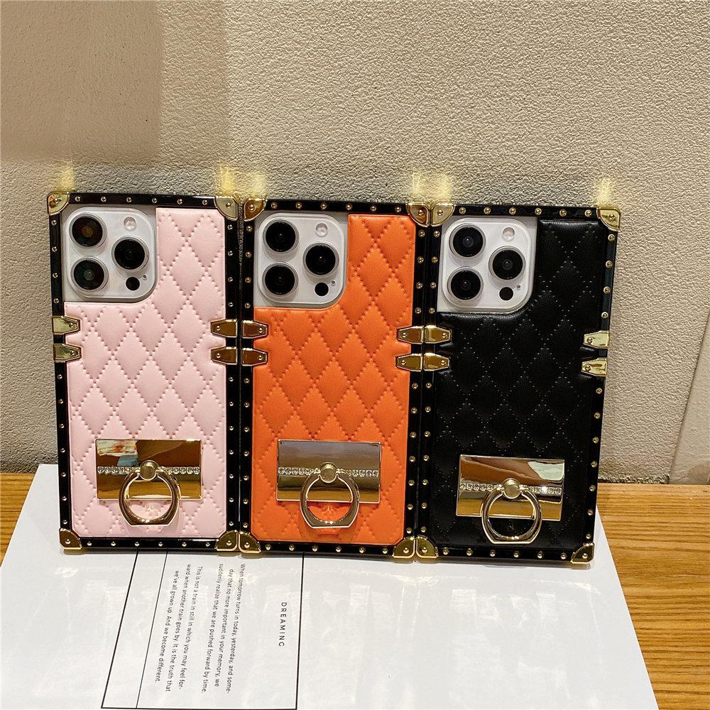 Modische rautenförmige Leder-Handyhülle mit Goldplattierung für iPhone 16 15 Pro Max 14 Plus 13 12 11 XR Hülle mit Ringhalter