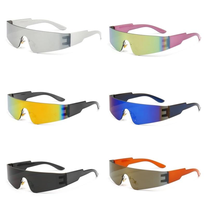 6PCS Cycling Punk One Piece Sunglasses Women Goggle Mirrored Y2K Sun Glasses Men 2000'S Wrap Around Eyeglasses Fashion Eyewear