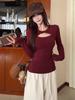 Frühling Herbst Einfarbig Ausgehöhltes Unterteil Damen Langarm Slim Knoten Pullover T-Shirt Temperament Top