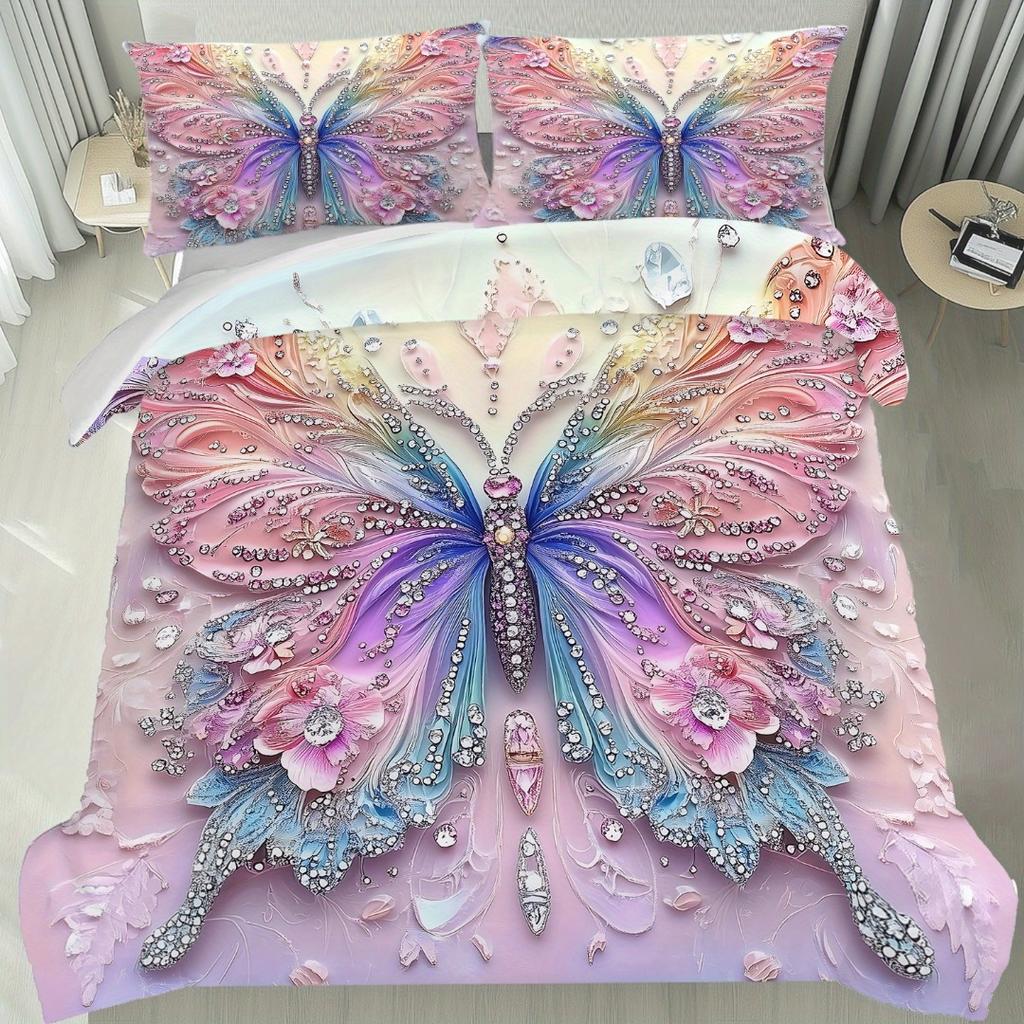 3-teiliges Rosa Lila Bettwäsche-Set Blau Fantasie-Stil Schmetterlingsdruck Bequem King Queen Twin Einzelgröße Geburtstagsgeschenk für Schwester