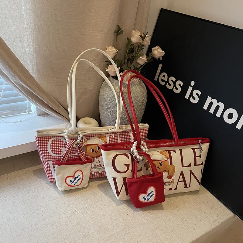 Large capacity bear letter tote bag women's new niche canvas bag versatile commuter tutoring bag