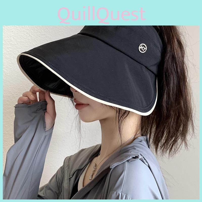 Brim Trendy Large Summer Hat For Women Uv Protection Black Sun Visor Cap