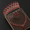 Brautkrone Dreiteiliges Set Metall Strass Halskette Ohrringe Winterhochzeit Rote Tiara Hohe Qualität Koreanisch