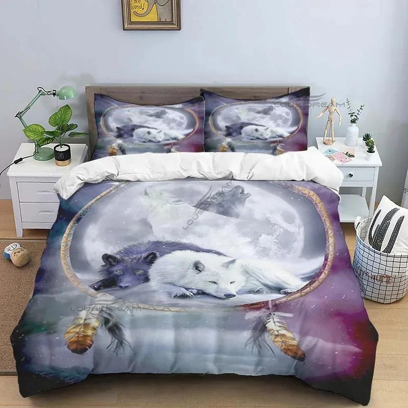 Indischer Traumfänger Wolfsmuster Bettdecke Bettwäscheset, Bettbezug Bettset Steppdecke Kissenbezug, King Queen Size Bettwäscheset
