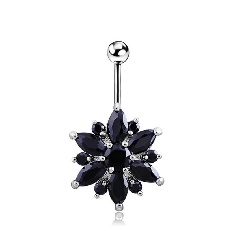 Bauchnabelpiercing aus 316L-Edelstahl, grüne Blume, Kristall, Gold, Bauchnabelpiercing-Schmuck