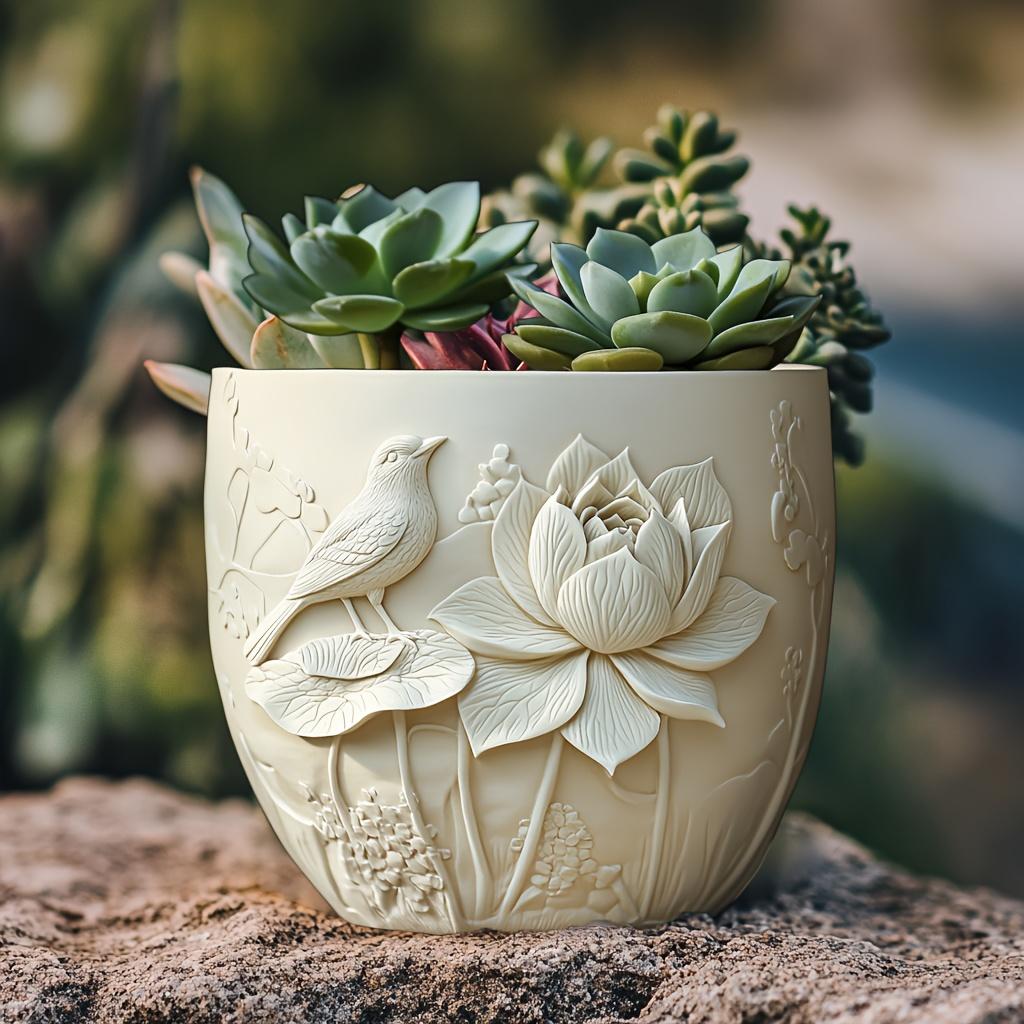Lotus Rhododendron Vogel Relief Sukkulenten Pflanze Blumentopf Harz Silikonform Lotusblatt Krähe Aufbewahrungsbox Blumentopf Gipsform