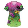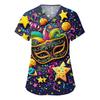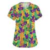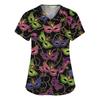 Modische Arbeitskleidung für Damen mit V-Ausschnitt, kurzen Ärmeln und bedruckten Taschen