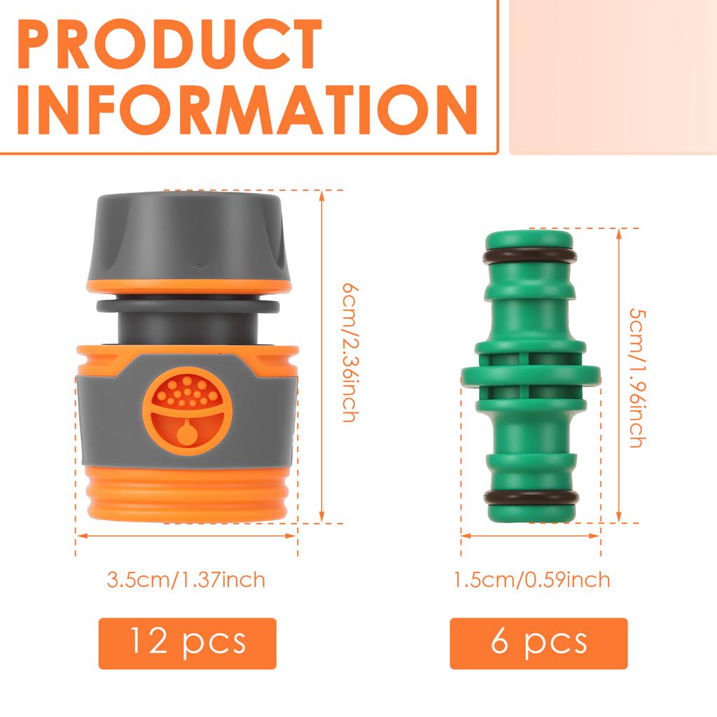 18-teiliges Schlauchverbinder-Set 1/2 Zoll Schlauchkupplungsset Doppelstecker Gartenschlauchverlängerung Zweiwegekupplung Verbindungsteil für Garten