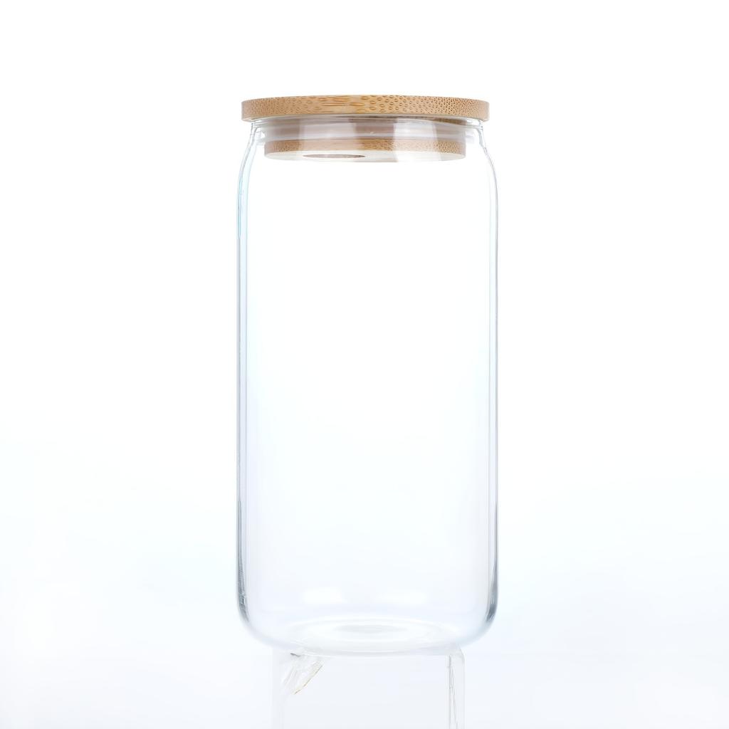 1 STÜCK 500ML Bambusdeckel Strohhalm Glas Hochwertige Milch-, Tee-, Wasser-, Kaffeetasse Transparentes Einmachglas Geschenkbecher