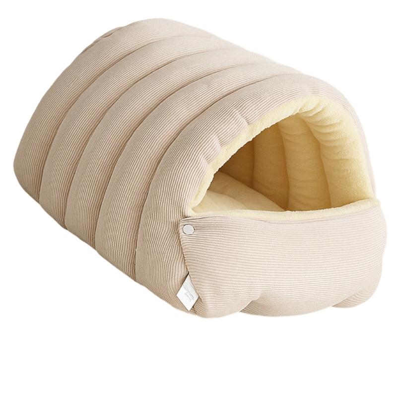 Die geschlossene Struktur ahmt natürliche Höhleninstinkte nach und bietet Wärme und Privatsphäre, während sie sich nahtlos in die Heimdekoration als funktionelles und dennoch stilvolles Haustierzubehör einfügt.