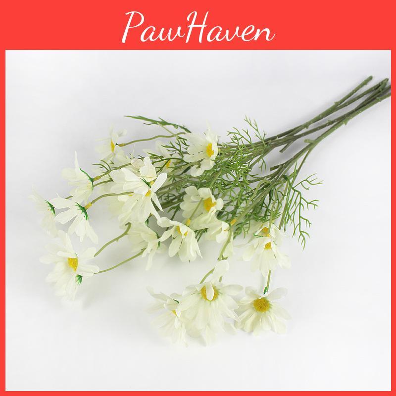 This artificial flower arrangement features five-head Dutch and small wild chrysanthemum blossoms crafted from high-quality silk material. Each stem measures approximately 19.3 inches 49 cm in height, offering a realistic appearance ideal for wedding decor, outdoor events, photography props, and home decoration. Easy to maintain, it can be wiped clean with a damp cloth for lasting beauty.