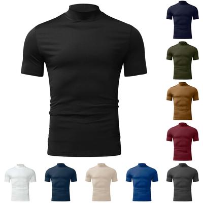 Sommer Einfarbig Herren Kurzarm T-Shirt Modisch Lässig Enganliegend Rollkragen Dünnes Basic-Shirt
