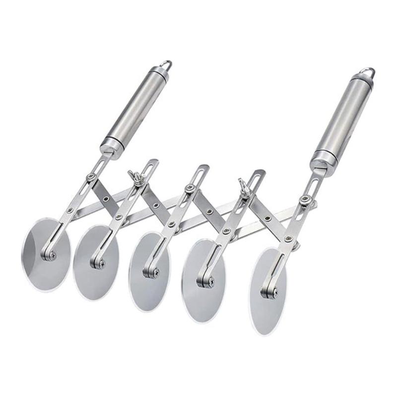 Das innovative einziehbare Design ermöglicht einen anpassbaren Abstand zwischen korrosionsbeständigen Rädern für gleichmäßiges Schneiden von Dessert-, Kuchen- oder großen Pizzen.