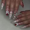24 STÜCKE Einfache Rote Französische Aufklebenägel 3D Schleife Süße Kirsche Liebesherz Falsche Nägel Tragbare Mandel Falsche Nägel für Frauen Mädchen