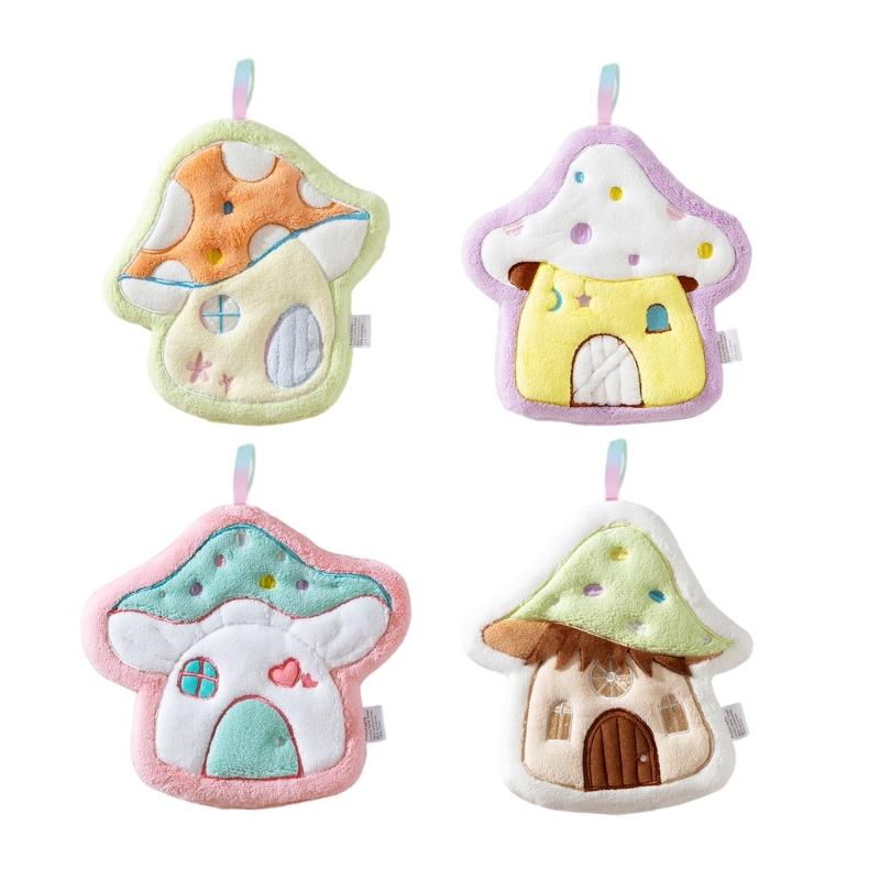 Soft Absorbent Coral Fleece Kitchen Towel Fun Mushroom Shape Handkerchief Wipe Rag Cloth Quickly Dry and Easy Hanging