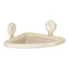 Space saving triangle designs features drainage holes and ABS/PET materials for water resistant bathroom storage in compact space.