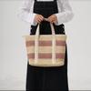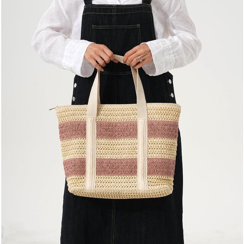 Farblich passende Strohtasche Damen Schulter Reißverschluss Webtasche Große Kapazität Tragbare Tragetasche Strandurlaub Strandtasche