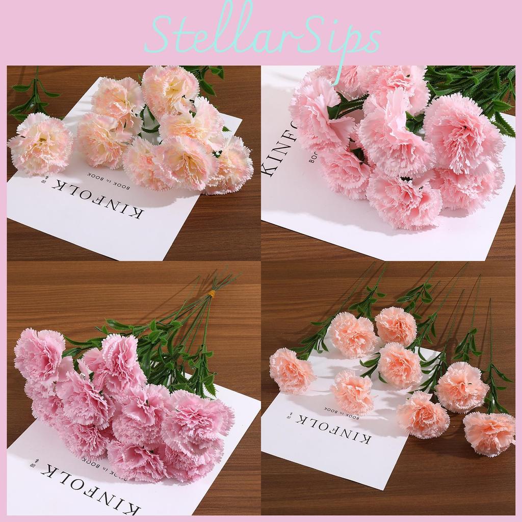 Langlebig und wartungsfrei: Im Gegensatz zu echten Blumen behalten diese künstlichen Nelken ihre Schönheit, ohne gegossen zu werden oder zu verblassen..