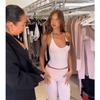 Europäische & Amerikanische Hellrosa Yoga Schlaghose und Neckholder Sporttop