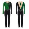 Mädchen Gymnastikkostüm Langarm Mesh Patchwork mit glänzenden Strasssteinen Schlüssellochrücken Tanz Jumpsuit
