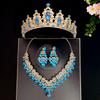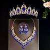 Koreanische Super Fee Brautkrone Dreiteiliges Set Hochzeitskrone Tiara Halskette Ohrringe Super Funkelnd Hochzeitskleid Accessoires