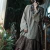 Johnature Damen Vintage Kleider Patchwork Farbe O-Ausschnitt Langarm Herbst Locker Chinesischer Stil Knopfkleid