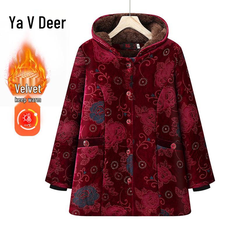 Yalu Elderly Women's Thickened Hooded Winter Cotton Jacket