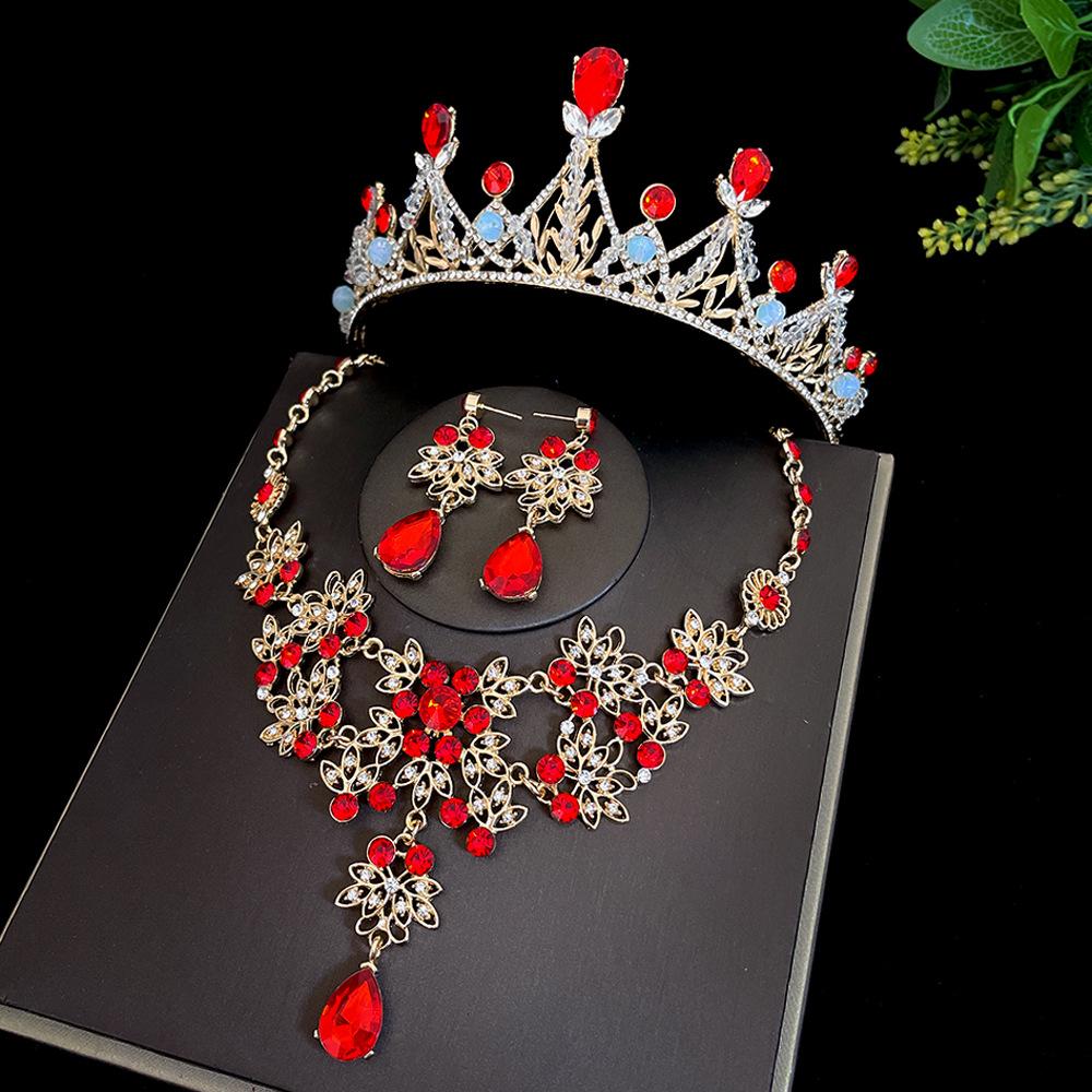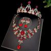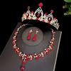 Red Bride's Crown Three Piece Set Wedding Crown Headwear Necklace Earrings Korean Style Super Fairy Wedding Dress Accessories
