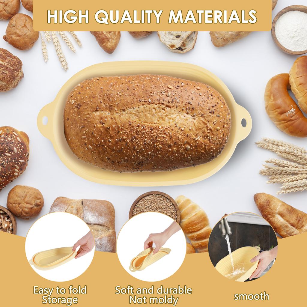 3 Stück Banneton Brot Gärkörbchen Silikon Sauerteig Brotschüssel Oval Sauerteig Brotkorb für Zuhause Küche Backzubehör
