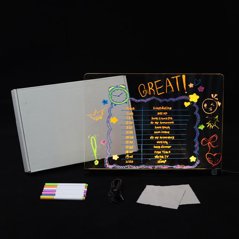 1Pc RGB transparent acrylic fluorescent board with LED light panel, luminous writing board, message board, advertising board, erasable drawing board
