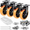 Set of 4 PVC Casters with Locking Brake Quiet & Smooth Swivels Plate Casters set Swivels Rolling Wheel for Homes Office
