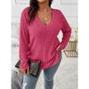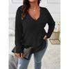 Neue Frühling Herbst Einfarbig Damen Tops V-Ausschnitt Langarm Geripptes Gebürstetes T-Shirt Lockerer Pullover