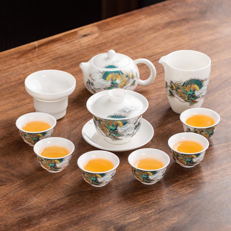 Kung Fu Teeset, Guochao Keramik Deckelschale, Haushalts-Komplettset Teetassen für Führungskräfte, Geschäftsgeschenke