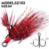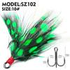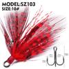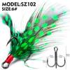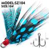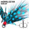 Größe 6#-10# Scharfe Drillinge mit Widerhaken Kohlenstoffstahlmaterial Feder-Jig Angelhaken Stärkedesign Federdekoration