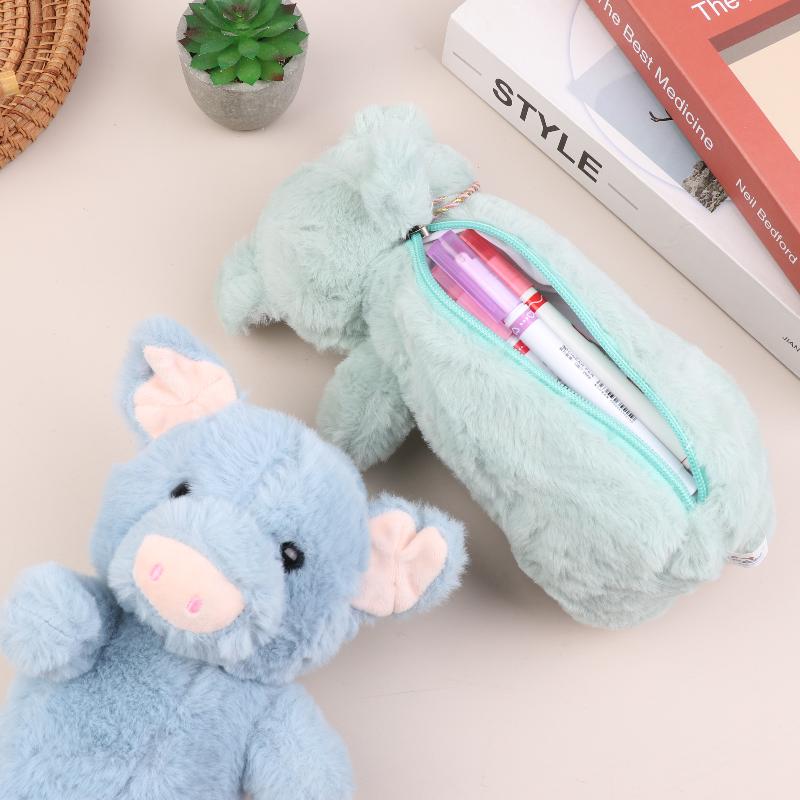 1 Stück Plüsch-Federmäppchen Schwein/Teddy/Pudel/Pinguin Schreibwaren-Aufbewahrungstasche Tragbares Stiftemäppchen Kosmetiktasche Schulsachen Geschenke