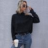 Damen Herbst- und Winterpullover, Locker gestrickter trägerloser Pullover mit langen Ärmeln und Rollkragen