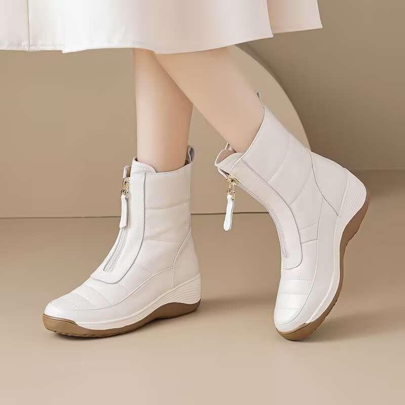 Dicksohlige Schneestiefel aus weichem Leder Herbst und Winter Plus Samt Verdickt Rutschfeste Stiefel Damen Keile Damenschuhe Wolle Kurze Stiefel