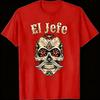 El Jefe Sugar Skull Damen T-Shirt Los Muertos Boss Mexikanische Kultur Skelett Calaveras Tag der Toten Halloween Geschenke