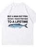 Hochwertiges, lässiges T-Shirt für Frauen eat Fish Day teach Fish Life Freizeit-T-Shirt